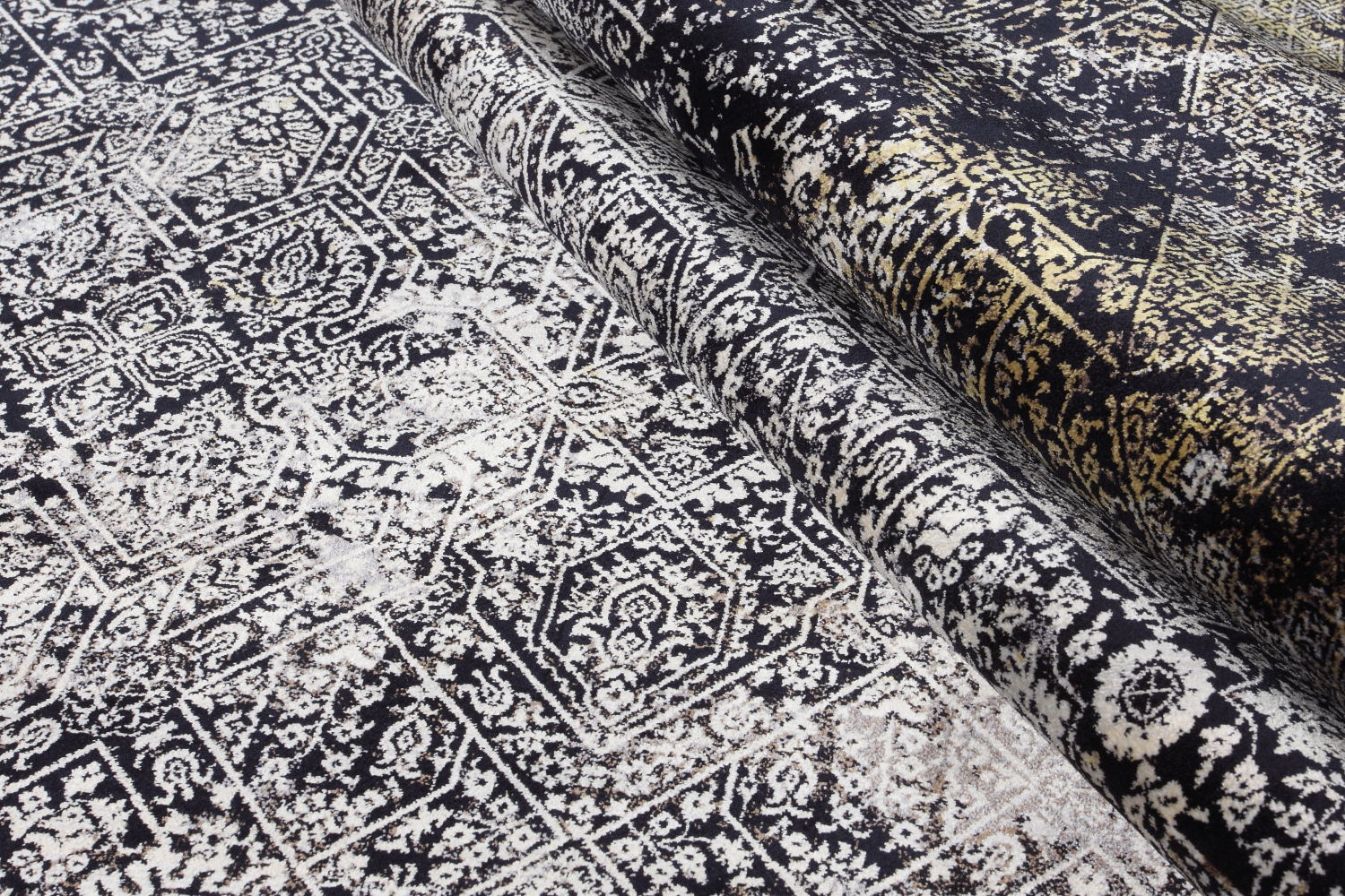 Teppich Qum 2370K Black-Bone kombiniert außergewöhnlichen Glanz mit höchster Präzision in Muster und Verarbeitung. Seine edle Materialmischung aus 30 % Naturseide und 70 % Modal verleiht dem Teppich eine unvergleichliche Weichheit und Strapazierfähigkeit. Modal, gewonnen aus Holzcellulose, bewahrt die edlen Eigenschaften der Seide und macht den Teppich pflegeleichter. Mit einer beeindruckenden Knotendichte von 3.000.000 Punkten pro Quadratmeter steht dieser Teppich maschinell hergestellten Modellen in nichts nach. Das filigrane Design und der seidige Flor bringen Eleganz in jeden Raum – ob Wohnzimmer, Arbeitsbereich oder Bibliothek. Teppich Qum 2370K Black-Bone ist eine stilvolle Wahl für Liebhaber hochwertiger Textilien. Er schafft ein luxuriöses Wohnambiente und vereint Schönheit, Qualität und modernes Know-how.